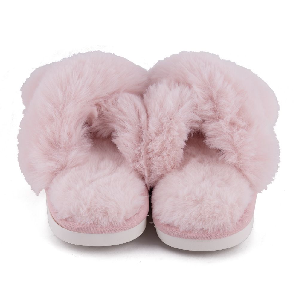 Stay comfy in this updated classic. The crisscross bands of plush; luxurious; fully lined faux fur will cradle your toes in comfort. The slip-on design will have you on your way in style and the flexible; anti-skid sole will ease your step as you go!