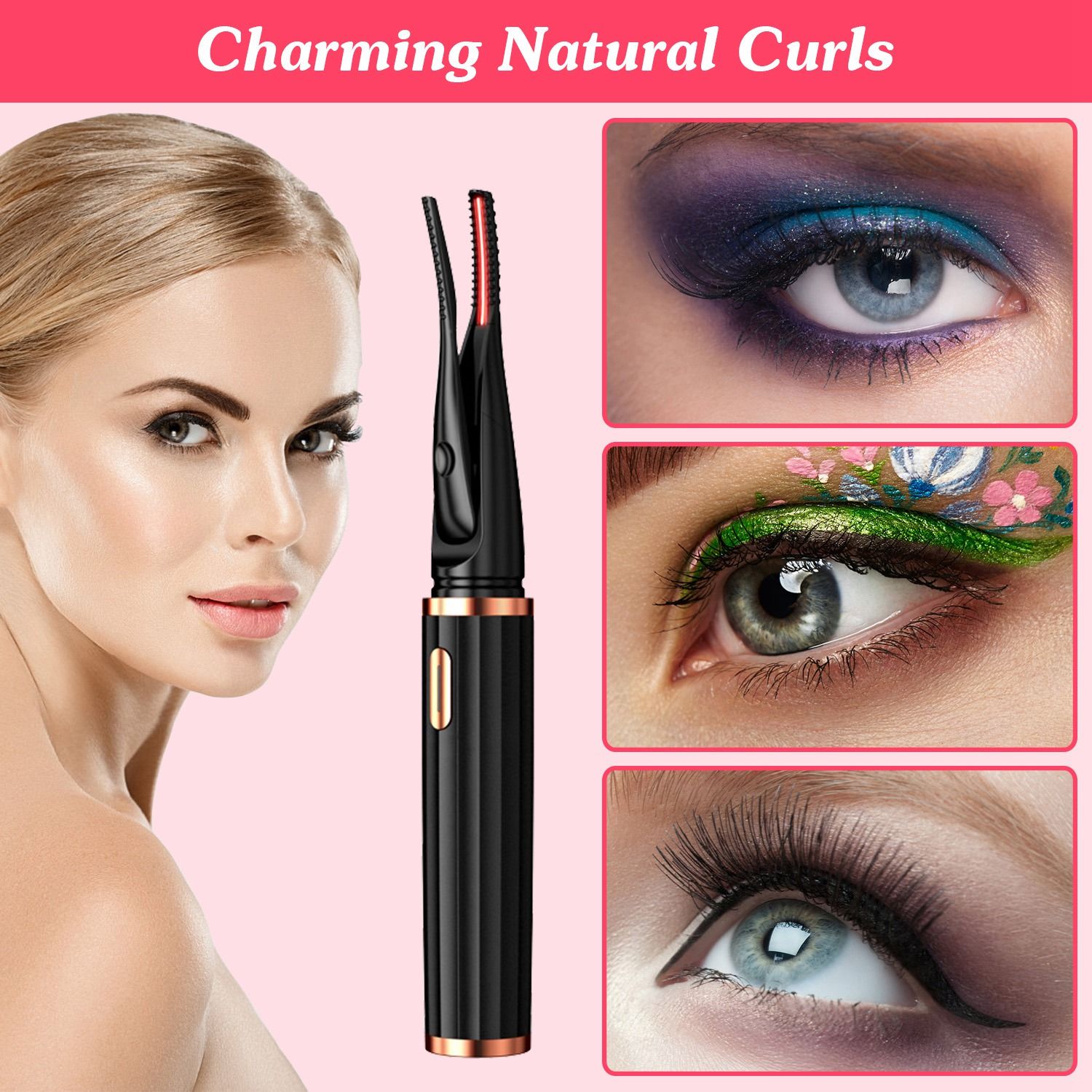 *USB Rechargeable Eyelash Curler*:Built in a 350mAh rechargeable battery,our electric eyelash curler runs up to 45 minutes after fully charged. Can be charged with power bank,car charger,socket,computer etc..