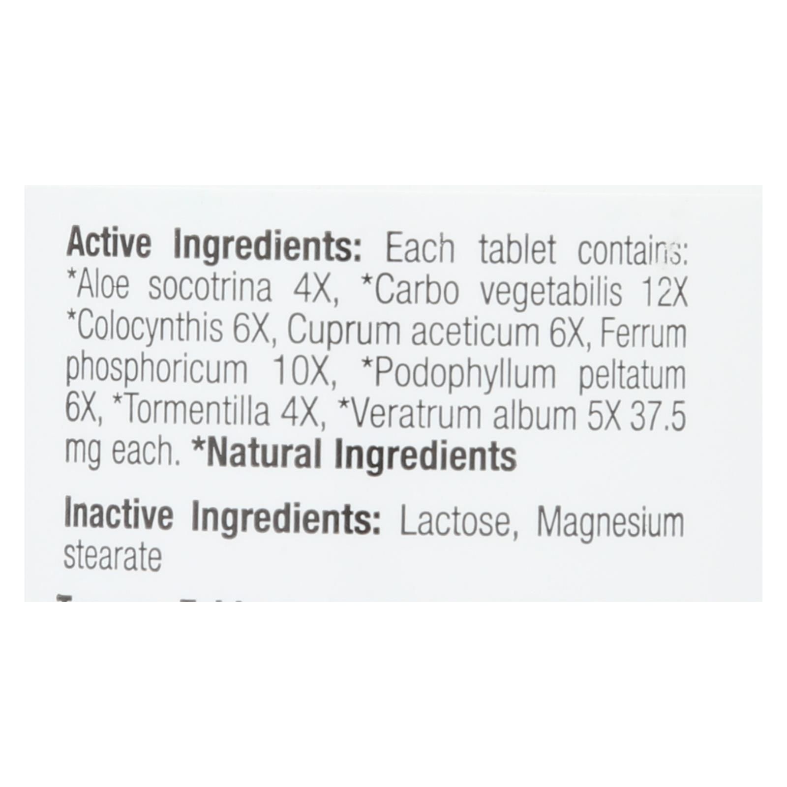 Bhi homeopathic diarrhea relief tablets help provide temporary relief from diarrhea and the stomachache associated with it. Especially suitable for those suffering from mild or travelers' diarrhea, these tablets are packed with natural active ingredients you dissolve in the mouth every hour until symptoms lessen. This recyclable bottle contains an ample 100 tablet supply of diarrhea relief tablets.