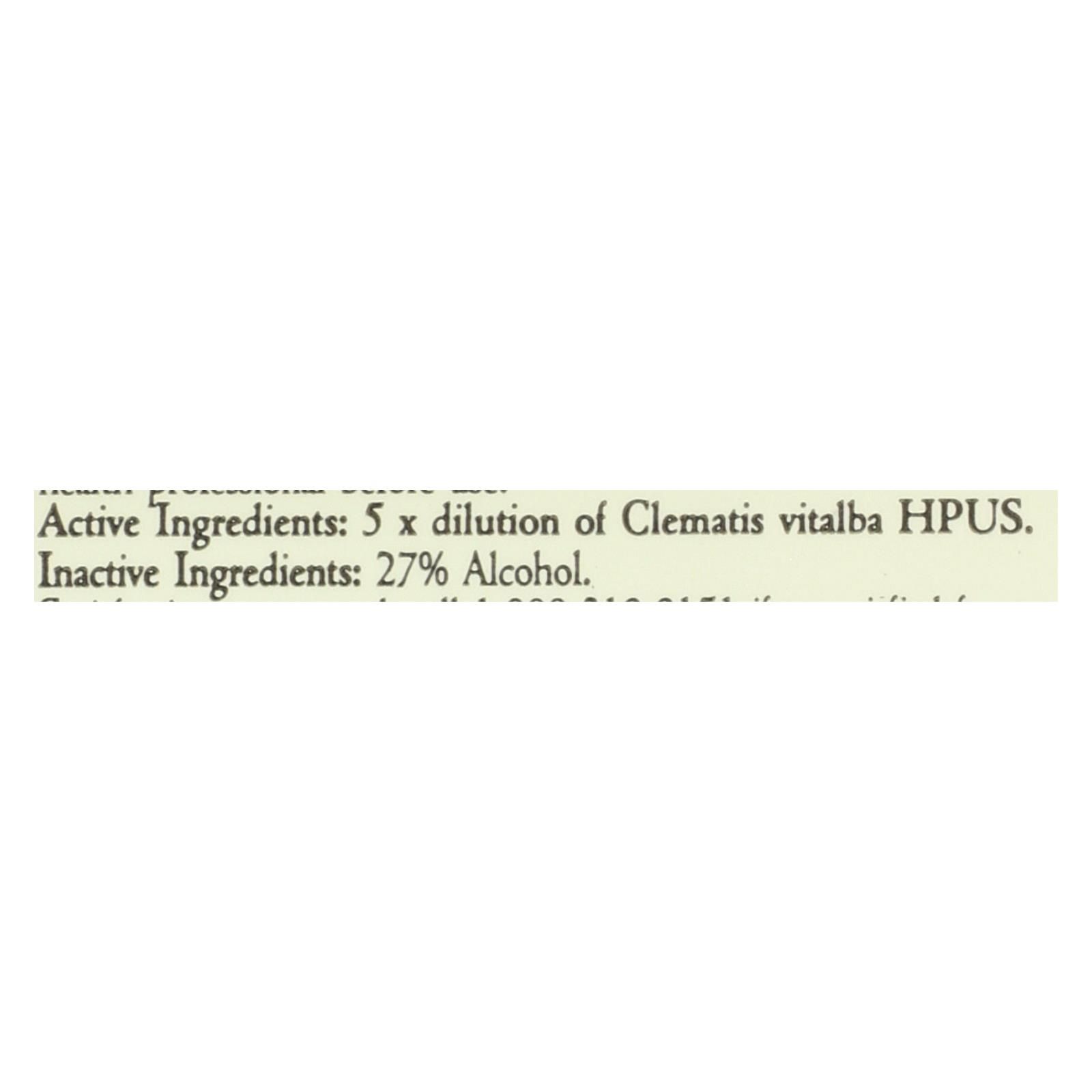 ingredients : 5x dilution of clematis vitalba hpus. 27% alcohol