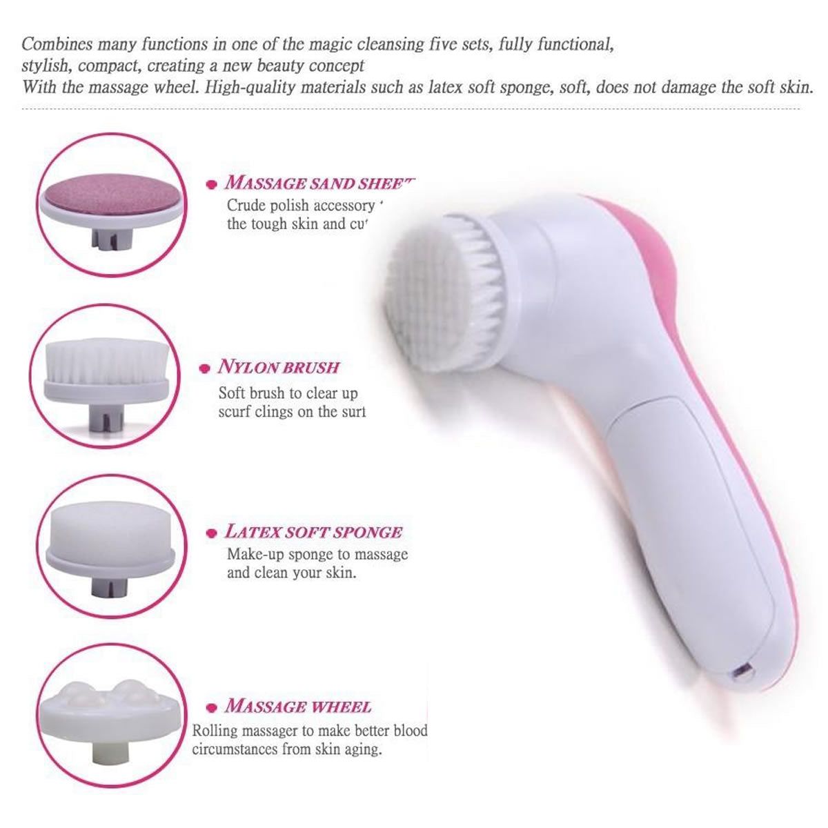 2. Four different head attachments: a gentle facial brush; a soft sponge; a buffer roller; and a pumice stone.